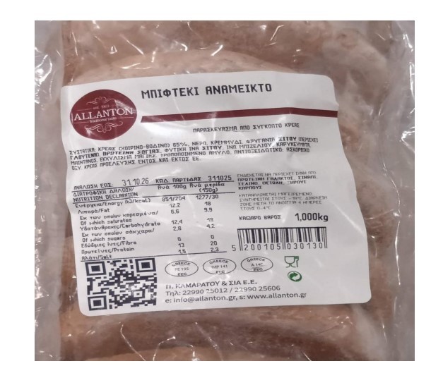 Η Περιφερειακή Διεύθυνση Πελοποννήσου του ΕΦΕΤ προχώρησε σε δειγματοληψία κατεψυγμένου προϊόντος “Μπιφτέκι Κατεψυγμένο”, με κωδικό παρτίδας 31102025 και ημερομηνία ανάλωσης έως 31/10/2026, το οποίο παράγεται από την επιχείρηση «Π. Καμαράτου & ΣΙΑ ΕΕ».