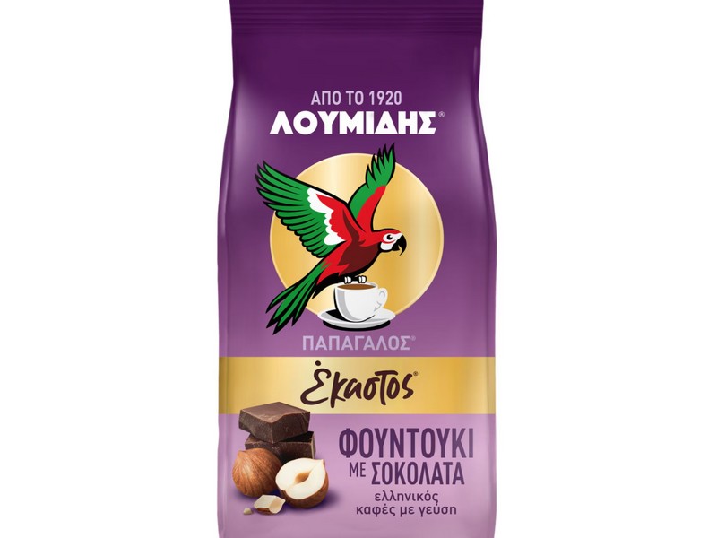Ο ελληνικός καφές Λουμίδης Παπαγάλος Έκαστος με γεύση φουντούκι και σοκολάτα είναι ένα νέο προϊόν που προσφέρει μια ήπια και αρωματική εμπειρία κατανάλωσης. Πρόκειται για έναν καφέ που συνδυάζει το παραδοσιακό άρωμα του ελληνικού καφέ με φυσική αρωματική ύλη φουντουκιού και νότες σοκολάτας, δημιουργώντας έναν ήπιο αλλά γεμάτο καφέ.