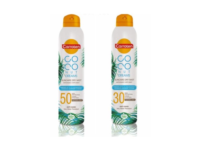Ένα νέο αντηλιακό κυκλοφόρησε πρόσφατα στην αγορά από το Carroten. Πρόκειται για τον κωδικό Coconut Dreams SPF50 και SPF30, που είναι εμπλουτισμένος με το προηγμένο σύστημα Superdry, προφέρει άμεση απορρόφηση, χωρίς υπολείμματα λιπαρότητας και