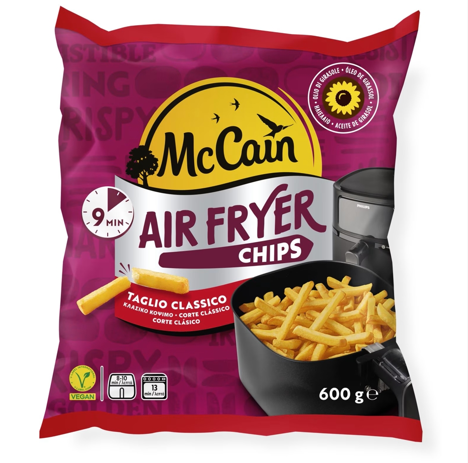 Οι πατάτες McCain για Airfryer διατίθενται σε συσκευασία των 600 γραμμαρίων και φέρουν τη σήμανση Vegan.