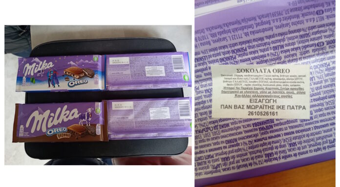 Συγκεκριμένα πρόκειται για τα προϊόντα «Milka σοκολάτα oreo» των 100 γρ., με ημερομηνία ανάλωσης κατά προτίμηση πριν από 24.06.2026 και «Milka σοκολάτα oreo Brownies» των 100 γρ., με ημερομηνία ανάλωσης κατά προτίμηση πριν από 28.04.2026.